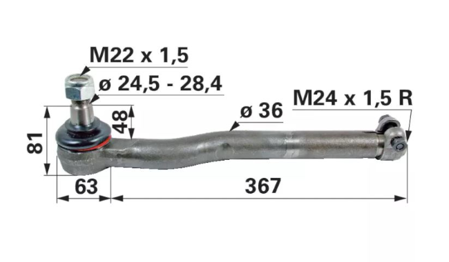 Zglob krajnika M28x1,5/M30x1,5 mm L-240 mm