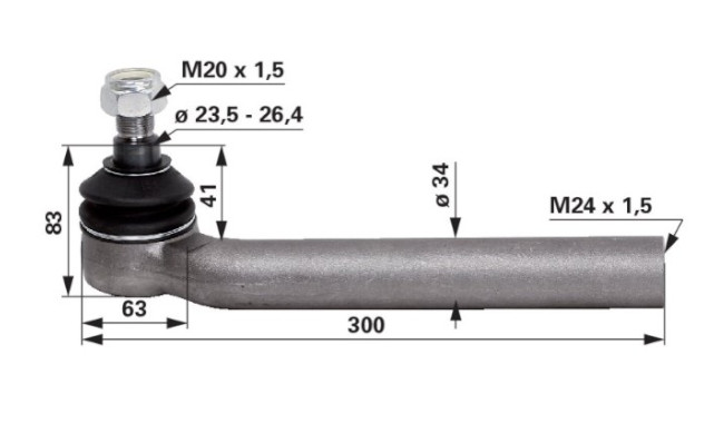 Zglob krajnika M28x1,5/M24x1,5 L-235 mm